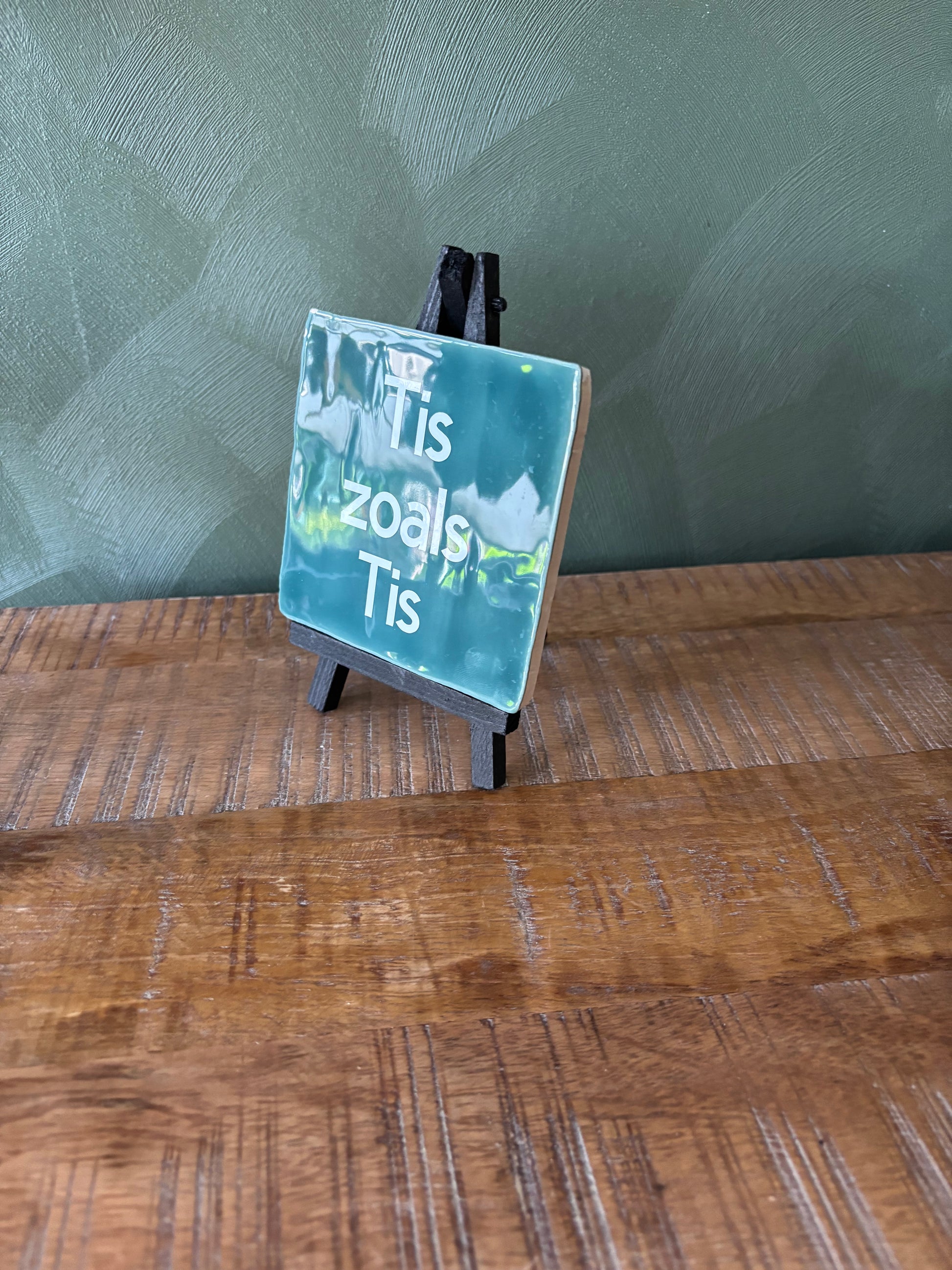 Een klein tegeltje met een grote boodschap: Tis zoals Tis!